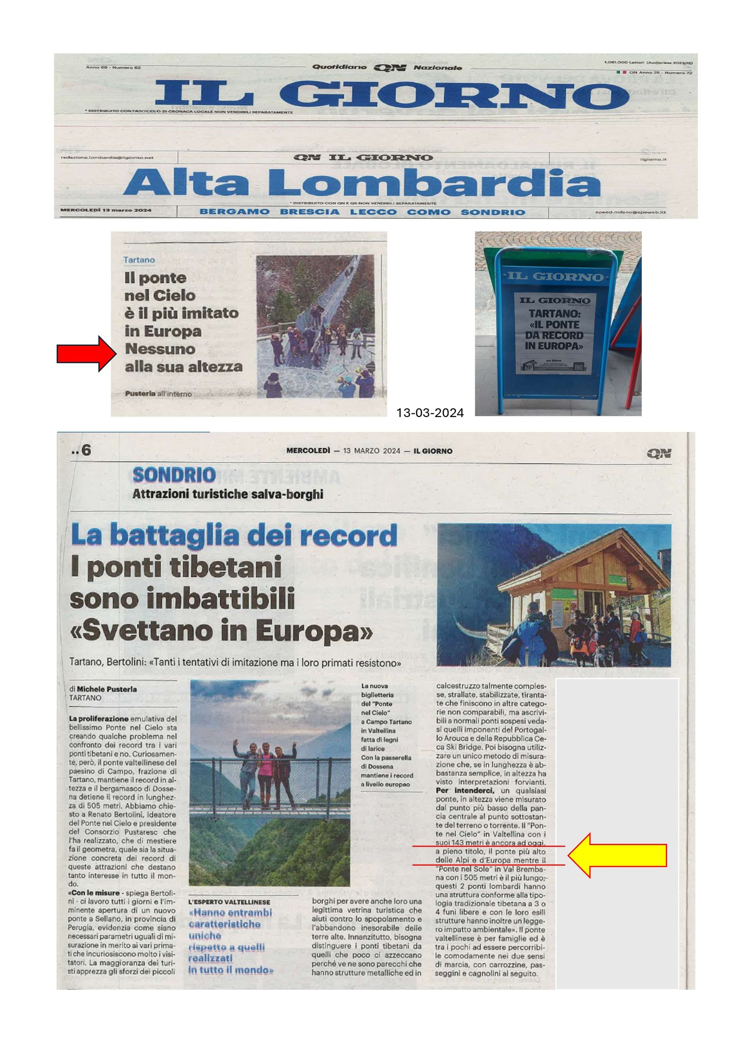 Ponte a struttura tibetana, senza funi stabilizzanti laterali che ha ottenuto il primato europeo in altezza